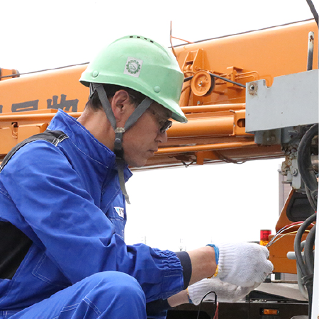 主に小型移動式クレーンの整備・修理・点検を行っています。
