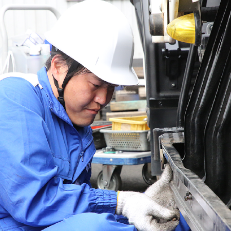 自動車業界未経験で右も左も分からない中で入社しましたが、会社の雰囲気がとても良く、やさしい先輩方に恵まれたこともあり、今では一人で作業することができ、技術の向上を実感しています。当時は先輩の作業スピードが速く、付いていくのに必死でしたが、その経験が今では生かされているのかもしれません。ただ、今はまだ小型移動式クレーンに限っての作業なので、今後はどんな車でも整備・修理・点検ができるような知識や技術を先輩から学び、更に技術を向上させ、会社や先輩方に恩返しをしていきたいと思っています。そしていつかの後輩に技術を継承したいと思っています。
